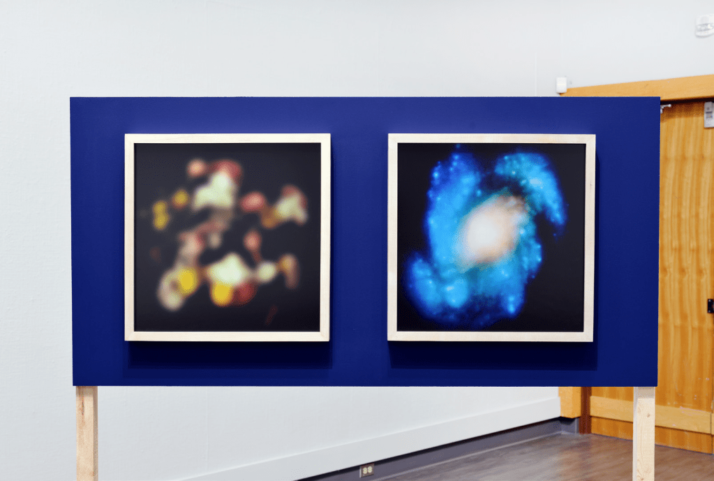 To record a bit more about Nic: Nic shared a work from his installation Pavilion of Shadows in which he was exploring the formal/aesthetic connections between his mother’s eyes and his eyes. He made this piece after his mother was diagnosed with glaucoma. In it, he shows an image of an eye with glaucoma next to an image taken from the Hubble space telescope when it briefly had a flaw that blurred its images. I’m interested in these types of connections between patterns as well. This piece reminded me of Holly’s work, especially in Floating Series, where she reflects on how “patterns of structure that are self similar can be observed over a wide range of scales.”