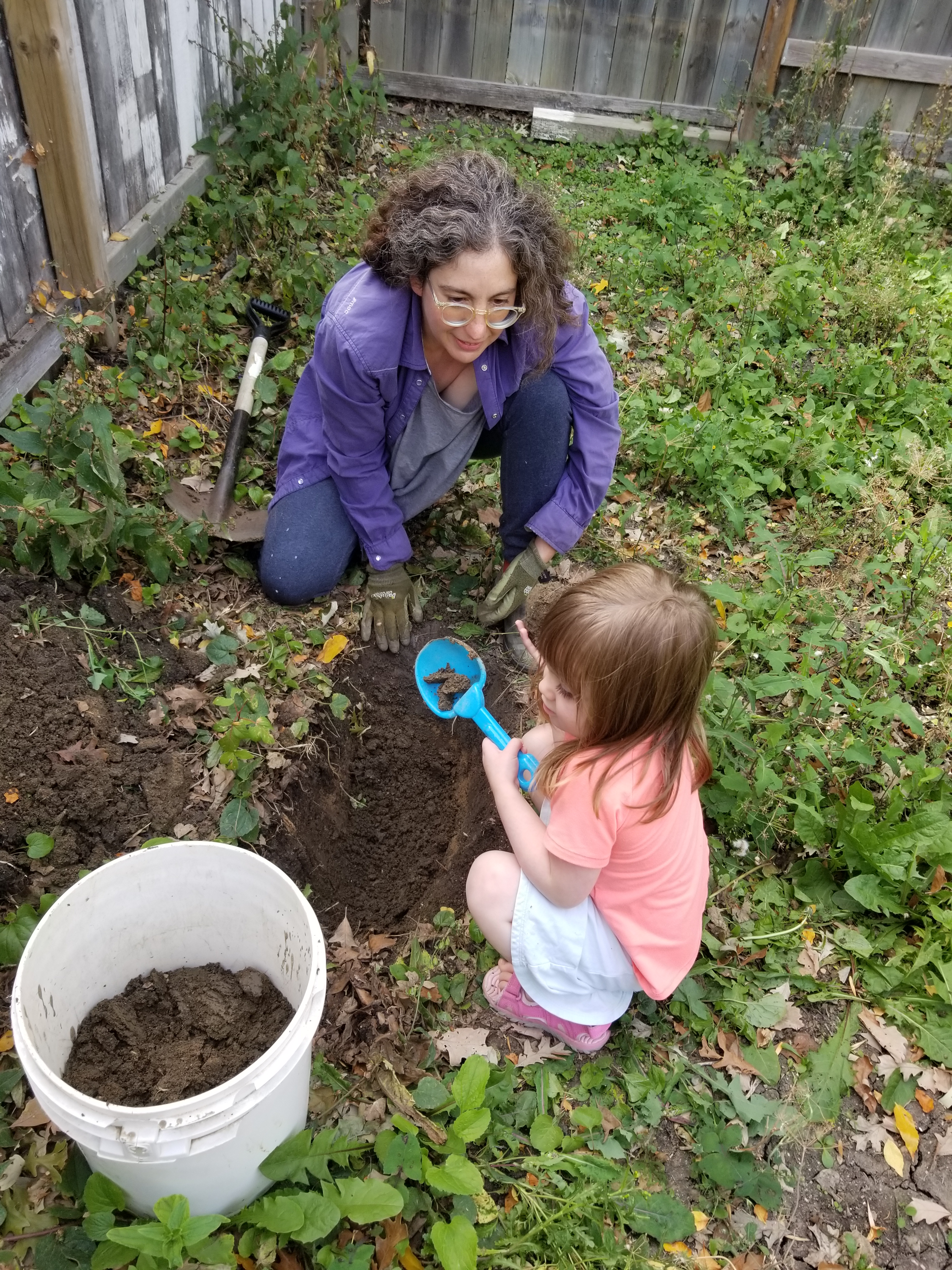 While all of that is still important to me, what matters to me most now, given how I’ve been feeling lately, is that I’m once again able to feel joy in making. Digging in the dirt with Madeleine’s daughter, physically clawing at it with my hands, dog-digging style, smelling it, feeling it, and being surrounded by the bounty of produce grown from it (and getting to take some home), was all joyful experience.
