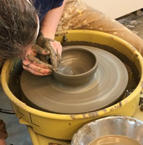 So, I’ve been preparing clay from Madeleine’s garden that can be thrown on a wheel and fired. It’s a bit of a process to get to this stage, but this week I got to start throwing with it, and it is well worth the work. It feels great on the hands.