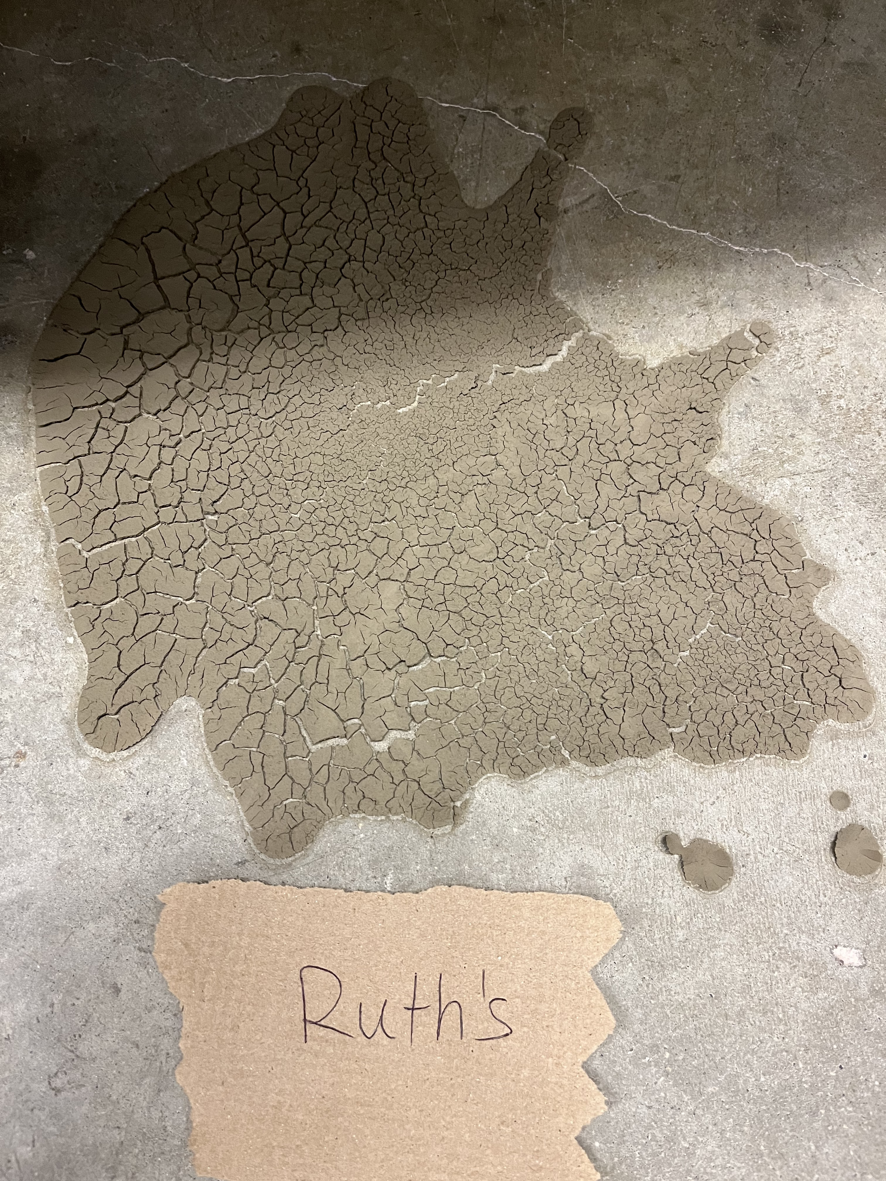 It even does this when poured on the floor. Very unusual! Other local clay dries out in a more predicable way (see Ruth’s).