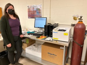 To determine what properties cause this difference in how the two backyard Regina clays act, I had them analyzed by the Department of Chemistry. Fortunately, the Department will, for a fee, run analyses for the public on their Rigaku X-Ray Diffractometer. This is a machine that can determine a substance’s composition of elements heavier than sodium. Rebecca Jamieson, the Department’s technician, enthusiastically ran these tests for me.