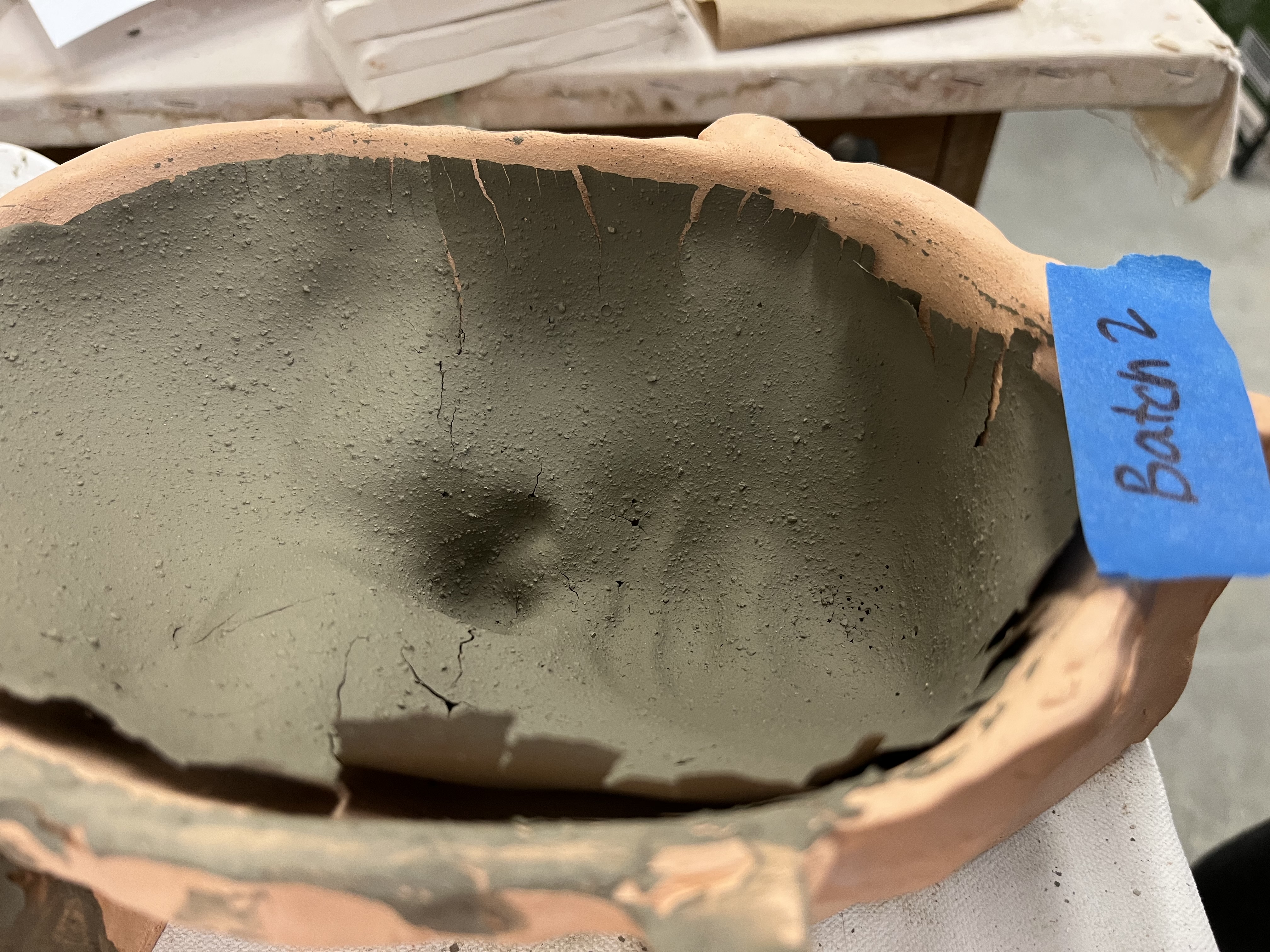 When poured onto a bisqued ceramic pot, rather than remain stuck to the surface as other slips do, behaving as a glaze, it dries and peels off.