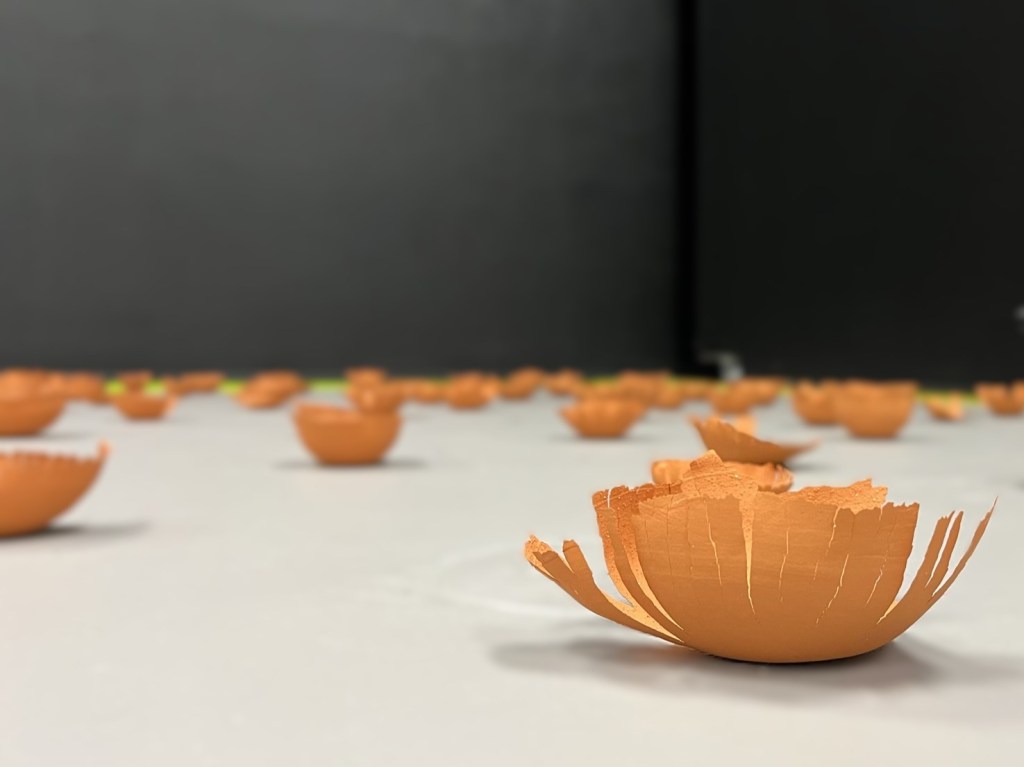 Crushed is an art installation about climate change anxiety. The gallery floor will be covered with over 1,500 eggshell thin ceramic bowls made from clay I dug up in Regina. On the wall, there will be a text about my experience of climate anxiety and grief. To read the text, you need to become a participant: will you step carefully between the bowls, perhaps tiptoeing or raising your pant cuffs, or will you stomp ahead, satisfied by the sound of shattering ceramic beneath your feet? What will you leave behind for others?