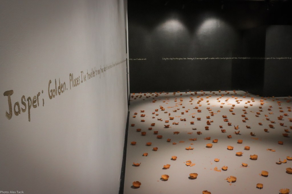 My ambition with Crushed was to create an environment that would bring participants’ own climate fears to the surface, show them that such feelings are justified and shared, and offer them resources and support. So often we are encouraged to be hopeful and focus on the positives. In fact, this is entirely built into the neoliberal society which is leading us towards disaster: never-mind worrying about the future, just keep calm and progress, progress, profit. We don’t often give ourselves and each other the opportunity to confront our difficult emotions about what the future may bring, emotions that are entirely reasonable given the unequivocally terrible state our natural world is in. I believe that it is important to learn how to face those feelings before they become overwhelming, as they have for me. Finding community is key to doing this. That is why at the end of the wall text was information about a non-profit support group I co-founded, EcoStress Sask, and a free discussion circle led by a psychologist and a counsellor that took place in the gallery at the end of the show.