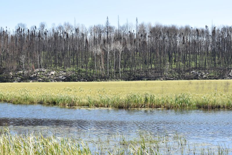 What a wonderous day. It started, after a quick breakfast, with a stop at a burned forest on our way to Missinippi to pick up a canoe. This was unlike any place I’d ever seen. In places, it was a complete burn, down to sand and solid rock of the Canadian Shield.