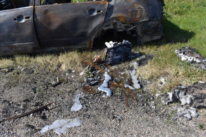 I’d been anxious about this trip. When the fires that burned these forests were raging last summer, the smoke comprising their particles blanketed me in fear and grief—grief for the life that had vanished into air (is that burnt warbler I smell?), and fear for what the future holds with this pace of global heating. The drive up reinforced these feelings: kilometers of burn on both sides of the highway, and then this, a car abandoned on the side of the road during the evacuations—