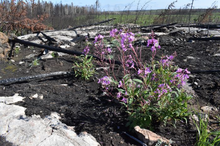 *However, what was unescapable in this place today were the spurts of bright colour popping out everywhere. Green grasses and other plants are already abundant: the showy purple of fireweed and tiny patches of orange mushrooms jump out of the black blanket beneath, resilience trophies.