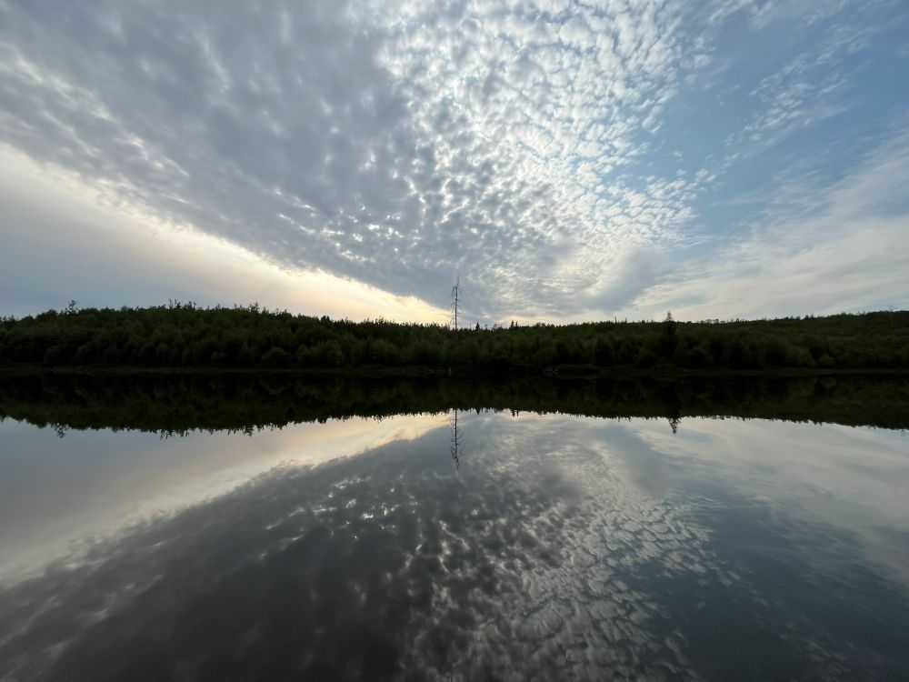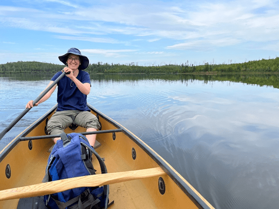 I’ve never canoed with anyone like Miriam. She and her husband, Quincy, have done trips up to 73 days and over 1,000km! Their canoe was handmade by a friend and is built for racing. It and her fiberglass paddles are extraordinary tools. I’ve never moved on water like this before. At one point, an otter family popped up from the glassy lake just in front of us, on its way somewhere. We watched each other for a while before they undulated away, their bodies long and Loch Nessy.