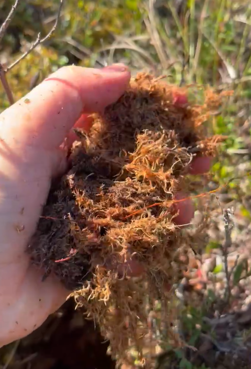 This is what peat is: the very bottom layer of these sometimes six-foot-tall ancient moss forests.