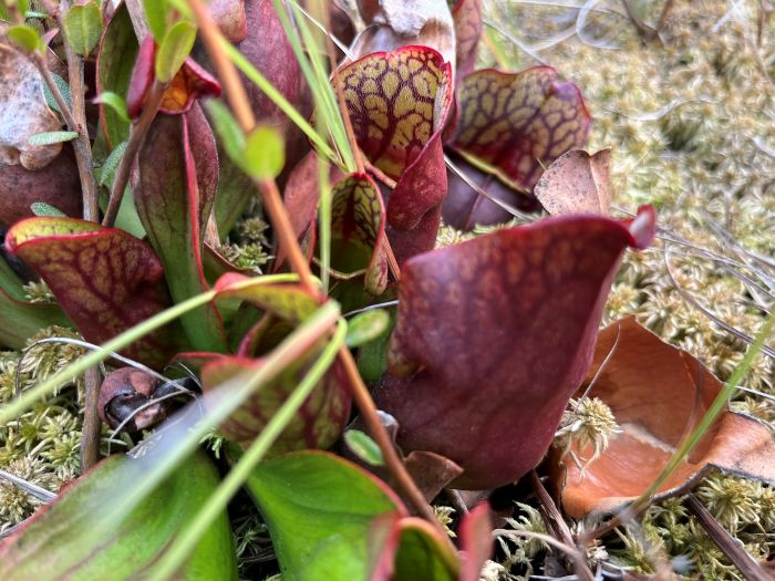 Can you spot the baby pitcher plant at 2 o’clock from the bog berry?
