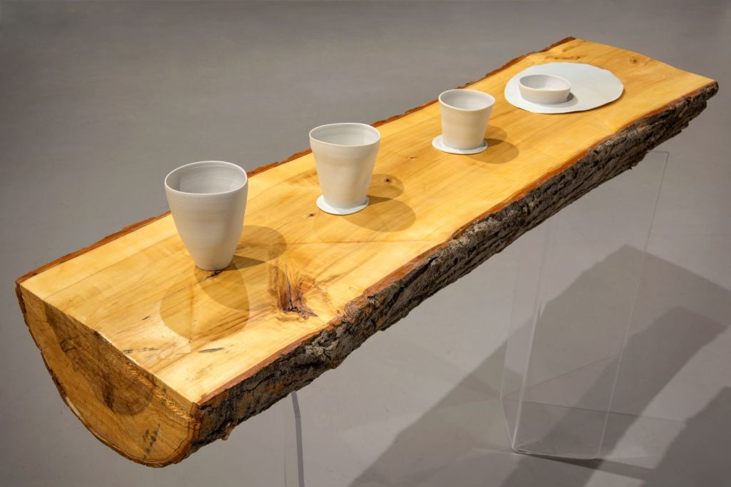 This piece in my series representing Canadian glacial loss, “Athabasca Glacier: 1918-2018,” is a set of fired porcelain cups that appear to be melting. This piece embodies the unequivocal connection between our drinking water and the melting of the world’s ice.